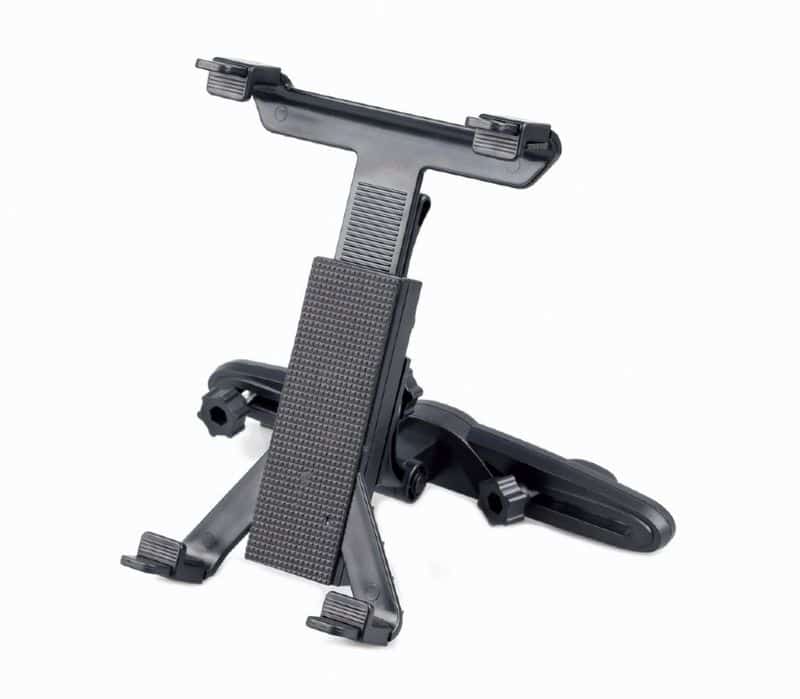 Universal: se adapta a todos los iPad y a la mayoría de las demás tabletas. Fácil fijación en el reposacabezas de las sillas delanteras. Entretiene a tus hijos en largos viajes en coche Material: ABS Peso neto: 0,23 kg Ajustable para tamaño de tableta: 140 – 250 mm Ancho de fijación del reposacabezas ajustable: 75 – 165 mm Dimensiones: 195 x 146 mm (plegado)