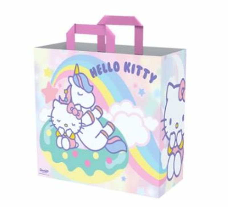 KONIX BOLSA HELLO KITTY UNICORN. Con un tamaño M de 40 x 45 x 20 cm Fabricada con material 100% reciclado y reciclable Color Color: Rosa A un precio económico