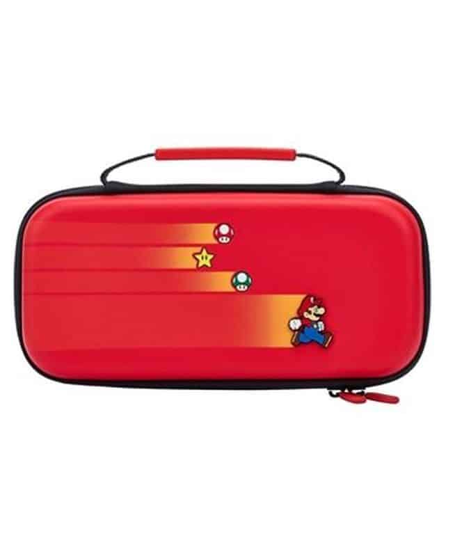 Donde quieras. Cuando quieras.Los tiradores de cremallera dobles y duraderos crean un sello hermético y ayudan a mantener incluso la suciedad y el polvo más molestos fuera del estuche y lejos de la consola.Funciona con la Nintendo Switch modelo OLED, Nintendo Switch y Nintendo Switch Lite.- Carcasa exterior sólida con asa de gomaycremalleras dobles resistentes.- Moldeado interior con forro de felpa y rejilla de almacenamiento con cremallera. La solapa protectora de pantalla acolchada integrada incluye almacenamiento de juegos para 6 tarjetas de juego.