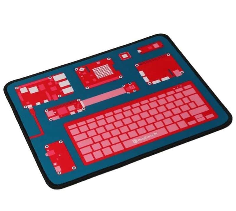 Alfombrilla de ratón oficial, con motivos Raspberry Pi Superficie trasera antideslizante para una buena estabilidad durante el uso Combina perfectamente con tus accesorios Raspberry Pi, completando así tu colección Compatible con todo tipo de ratones