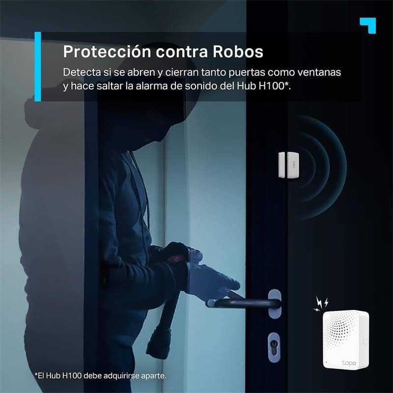 Protección contra robos. Detecta si se abren y cierran tanto puertas como ventanas y hace saltar la alarma de sonido.