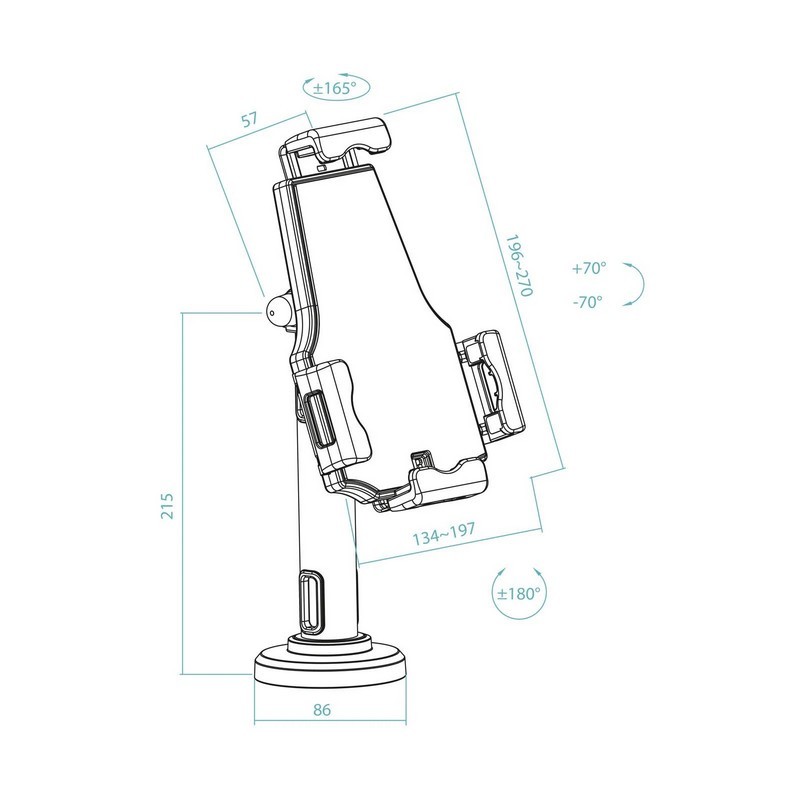 Características Soporte antirrobo tablet TooQ AISATV0432 Seguridad profesional para tablets. Este soporte antirrobo de sobremesa o pared está diseñado especialmente para negocios, comercios y espacios públicos que buscan proteger dispositivos sin renunciar a la funcionalidad ni al diseño. Su estructura en acero de alta calidad proporciona robustez y resistencia frente a robos e intentos de manipulación no autorizada.. Versatilidad de instalación. Se puede fijar tanto en mesa como en pared, adaptándose a cualquier espacio, gracias a su sistema de montaje múltiple y a su organizador de cables integrado. El candado de seguridad , fácil de instalar y con llaves incluidas, facilita la tranquilidad en ambientes de alto tránsito.. Adaptabilidad universal. Compatible con la mayoría de tablets de 7,9 a 10,5 pulgadas, el sistema de anclaje permite ajustar el soporte para sujetar firmemente dispositivos con ancho de 134 a 197 mm y altura de 196 a 270 mm, siendo la opción profesional preferida para puntos de control, kioscos de autoservicio, museos y más.. Máxima ergonomía y usabilidad . Permite la rotación 360° y un giro de hasta 330°, además de inclinación de -70° a +70°, lo que garantiza máxima maniobrabilidad y comodidad visual tanto en orientación vertical como horizontal. El altísimo nivel de ajuste mejora la experiencia interactiva y facilita el acceso para usuarios y técnicos.. No pongas en riesgo la inversión de tus dispositivos: escoge seguridad, precisión y diseño. Elige el soporte TooQ para elevar el estándar en tu entorno profesional.. Especificaciones Soporte antirrobo tablet TooQ AISATV0432 Especificación Detalle Tipo de producto Soporte sobremesa/pared antirrobo Compatibilidad Tablets universales 7,9 a 10,5 pulgadas Material Acero de alta calidad Color Negro Ancho compatible 134 mm a 197 mm Alto compatible 196 mm a 270 mm Altura del soporte 215 mm (base al centro) Ángulo de inclinación -70° / +70° Ángulo de giro -165° / +165° Rotación pantalla -180° / +180° Ángulo de rotación real 360° Peso neto / bruto 0,99 kg / 1,28 kg Incluye Soporte, adaptador pared, kit montaje, manual instalación, candado antirrobo Color del producto Negro Organizador de cables Sí Marca compatible Universal . Envío a todas las Islas Canarias.