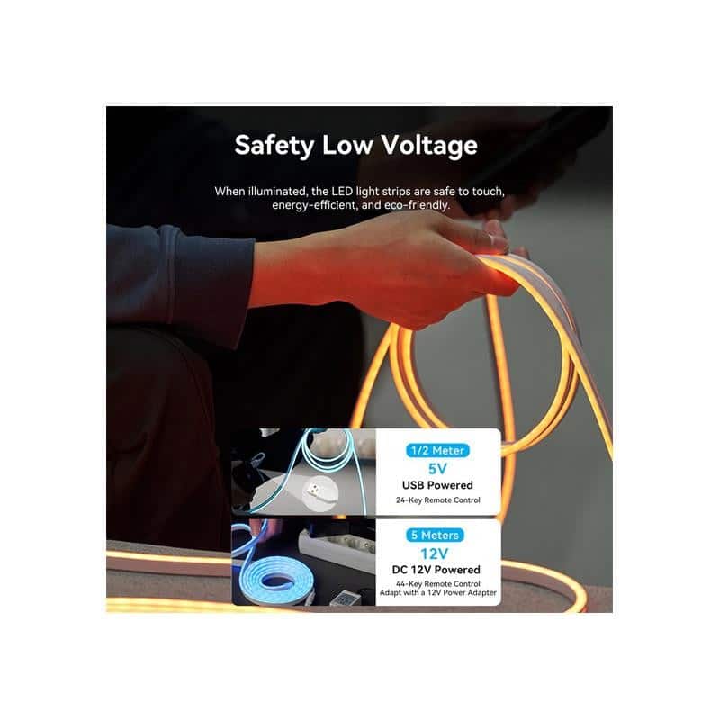 Tira LED RGB de silicona Vention PAEWF de 1 metro, flexible, resistente al agua y con control remoto, ideal para iluminar y personalizar cualquier espacio con estilo.